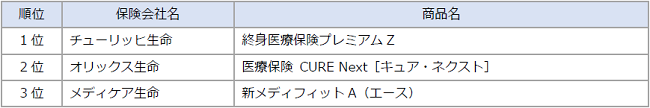 ■チューリッヒ生命の「終身医療保険プレミアムZ」が1位にランクイン