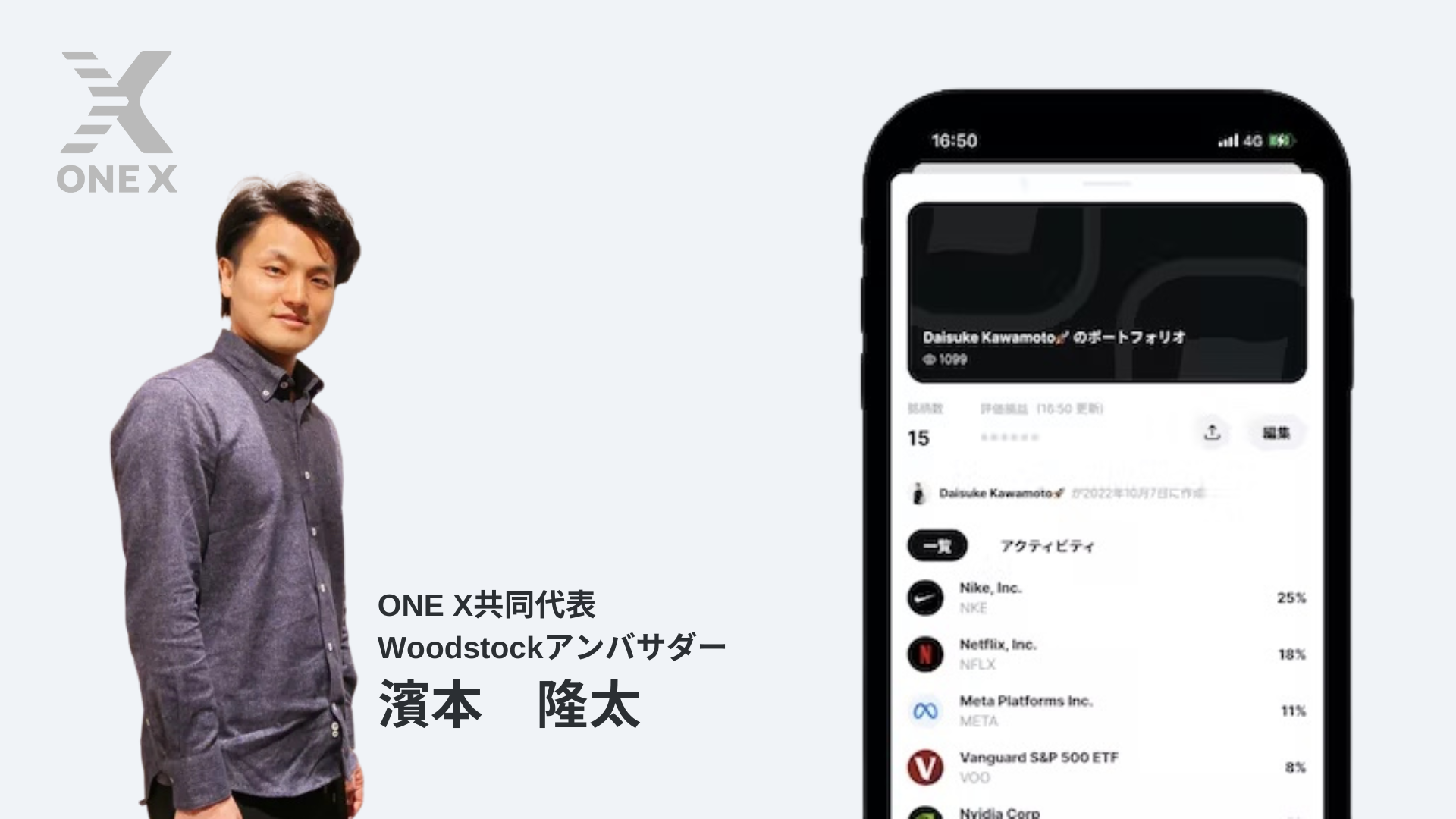 ONE X共同代表の濱本はWoodstockアンバサダーとして、顧客コミュニティの構築・開発、オンライン・オフラインイベントの開催等を行って参りました。今後はさらにその支援を拡大し、株式投資文化の醸成を推進して参ります。