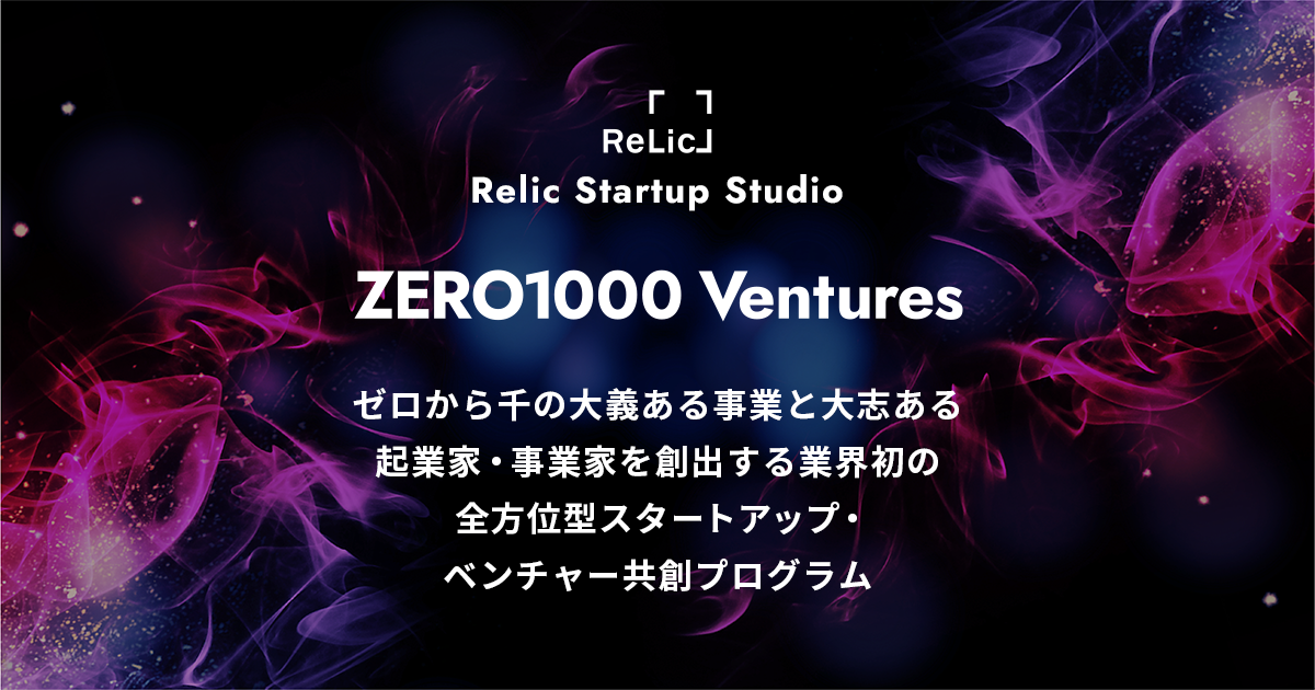 このような課題を解決し、より起業家ファーストで挑戦しやすい環境を実現することで日本のスタートアップエコシステムへの貢献を行うため、ベンチャーキャピタルではなく、あえて非上場を貫く事業会社であるRelicグループだからこそできる自由な全方位型スタートアップスタジオ「ZERO1000 Ventures」が生まれました。本プログラム名には、ゼロから1,000の事業を創るという想いと、ゼロから1,000億規模の事業を創るという志の双方を込めています。