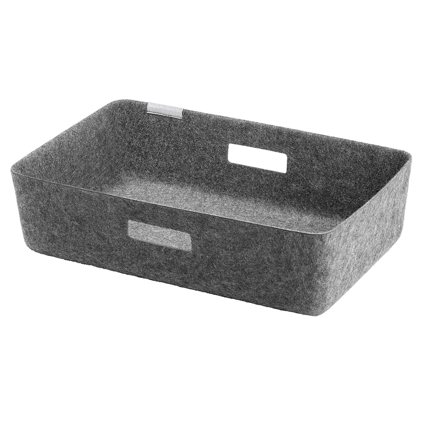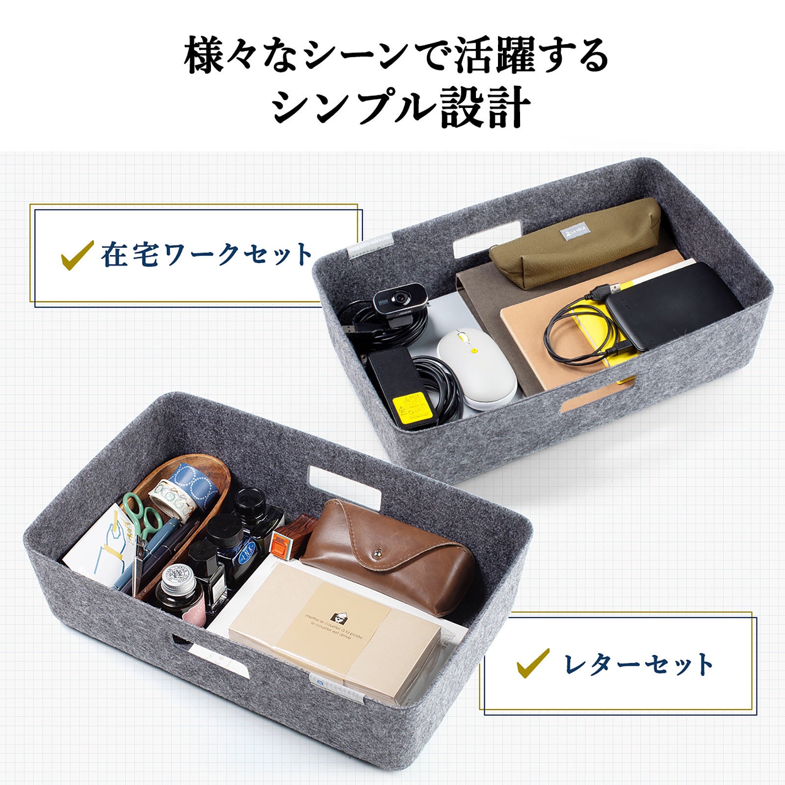 フェルトボックス 収納BOX 収納ケース フェルト 小物入れ ポケット付き 圧縮成形 ハンドル付き 幅40cm 奥行25cm 高さ11cm グレー