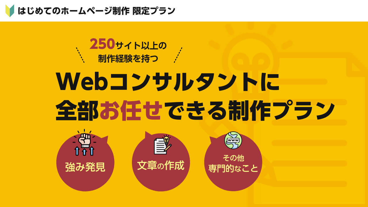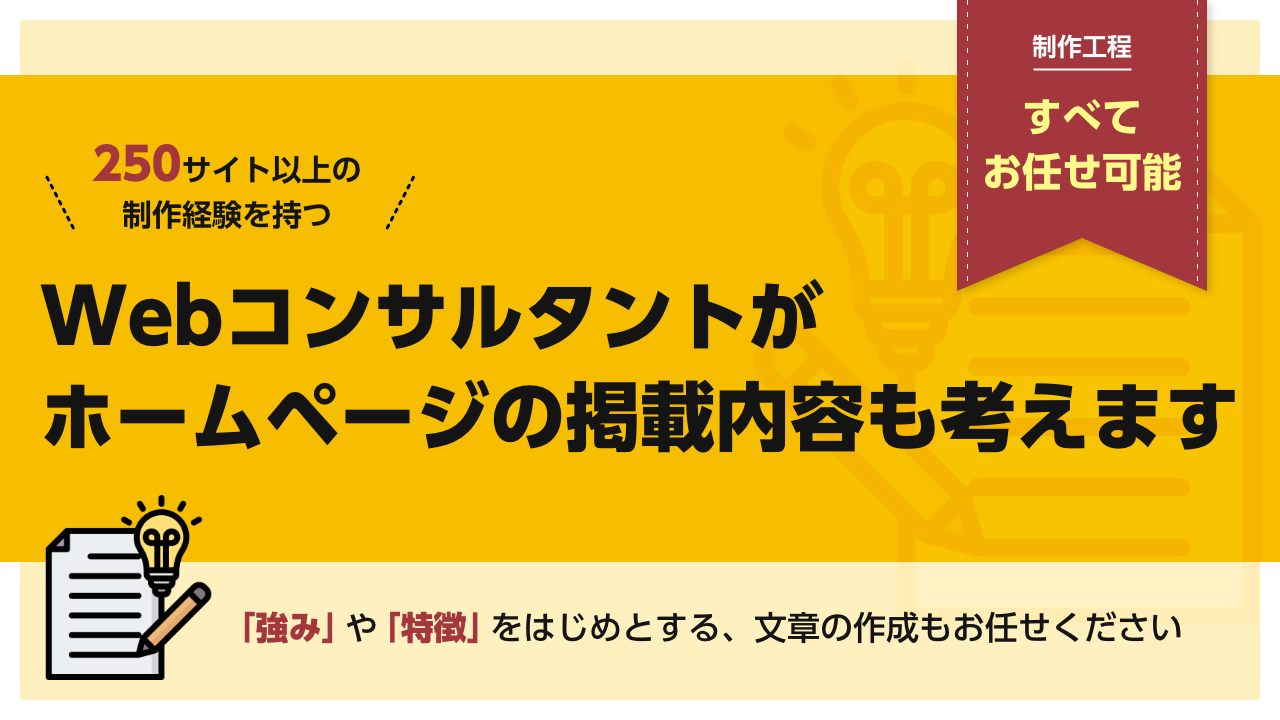 当プランでは文章をはじめとする掲載内容の作成もホームページ制作の専門家である弊社スタッフが行います。