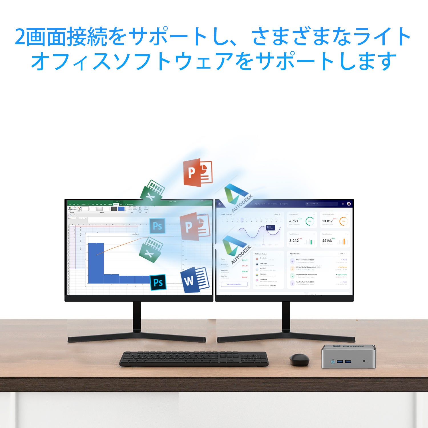 ⭐4K UHDハイビジョン画面:BMAX B3はIntel UHD Graphics 600 GPUを搭載し、超リアルな4K UHDビジュアルに対応しています。また、HDMI*2接続により、最大2台のモニターでマルチディスプレイを構築することができます802.11b/g/n/ac、2.4+5G Wi-Fi、1000M LANに対応し、ネットワークの高速化とパフォーマンスを保証します。