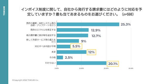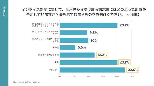 自社から発行する請求書の対応方法について、「対応すべき内容が不明」「未定」「わからない」と回答した人が約37.6%でした。