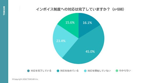 - インボイス制度への認知度は71% 対応を完了しているのはおよそ16%
