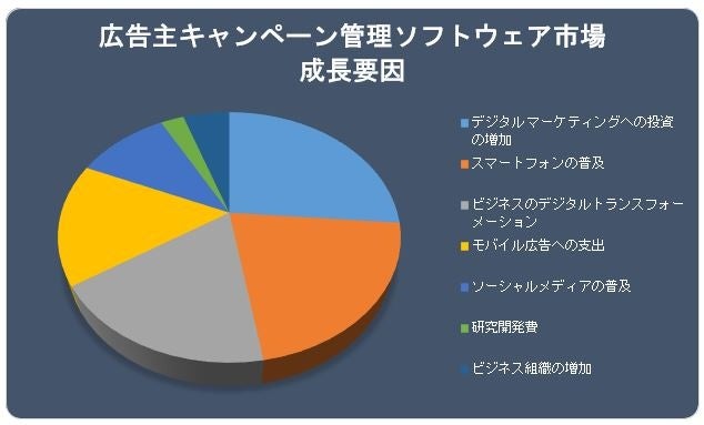ビジネスの急速なデジタル トランスフォーメーションでは、ブランドはデジタル キャンペーンを通じてさまざまなデジタル チャネルを介して顧客とコミュニケーションを取る必要があります。 これらのデジタル キャンペーンにより、広告主のキャンペーン管理用ソフトウェアの需要が高まると予想されます。 広告主キャンペーン管理ソフトウェアは、モバイル デバイス向けの広告キャンペーンの作成、実装、および評価にも役立つはずです。 また、モバイル広告は、ブランドがソーシャル メディアを通じて製品やサービスについて学ぶ大多数のオーディエンスにリーチするのにも役立ちます。 したがって、モバイル広告への多額の投資とソーシャル メディア ユーザーの成長により、ソフトウェアの需要が高まると予想されます。 さらに、ビジネス組織の存在感の高まりと研究開発への支出の増加は、市場の成長につながると考えられています。