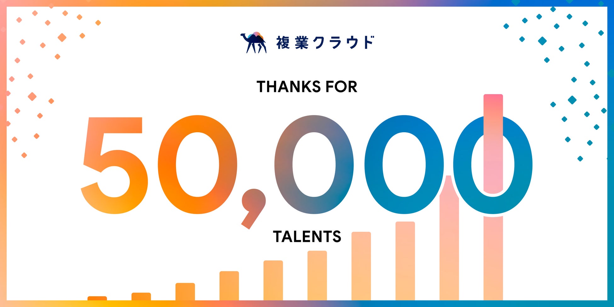 2019年9月にサービスを開始した「複業クラウド」は、複業したい個人と企業や自治体を繋ぐ、総合型複業マッチングプラットフォームです。サービスリリース以降はタレント数が順調に伸長し、この度累計5万人を突破しました。複業クラウドに登録する目的は、収入を得たい、地元に貢献したい、スキルアップしたいといった金銭報酬、スキル報酬、キャリア報酬、感情報酬などさまざまです。今後も複業のリーディングカンパニーとして、「複業」を通じて誰もが挑戦できる世界を目指します。