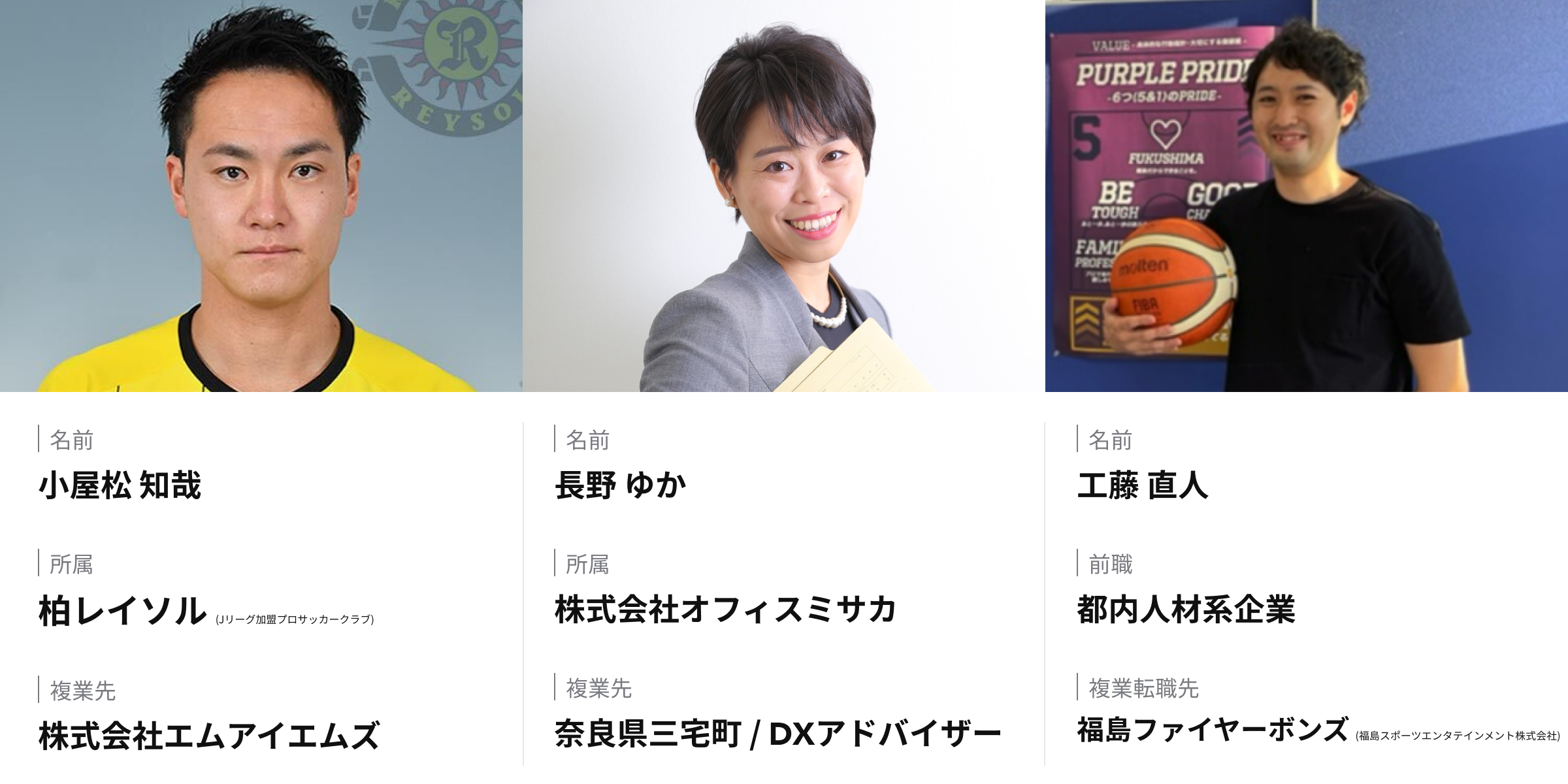 また、案件も多種多様です。複業先は民間企業だけではなく、自治体やスポーツチーム、教育機関など業界業種問わず様々な業種の複業先があります。実際に、複業クラウドを通じて活躍されている3名をご紹介します。