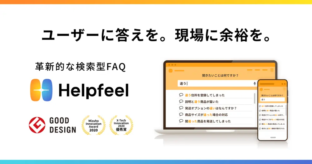 「Helpfeel」は、世界初の独自アルゴリズム「意図予測検索」を搭載した、検索ヒット率98%を誇る検索型FAQシステムです。