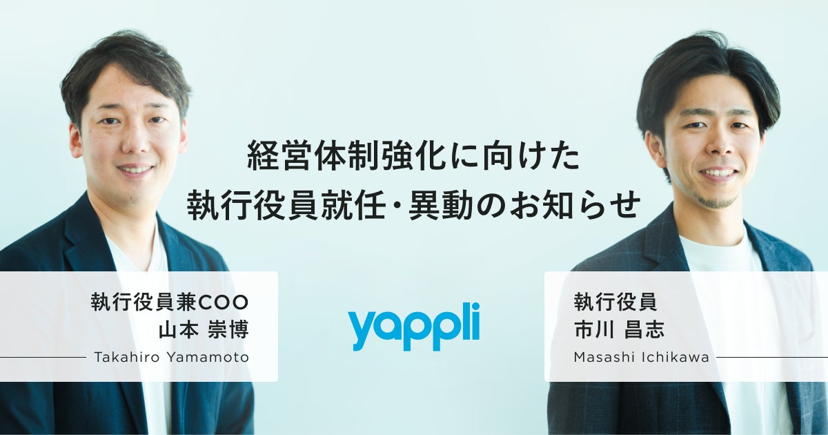 今回の役員体制変更により、企業そして社会における課題解決のためのモバイルDX推進とヤプリの事業拡大を図ってまいります。役員・社員一同、一致団結し、より一層のサービス向上に努めてまいりますので、今後とも変わらぬご支援を賜りますようよろしくお願い申し上げます。