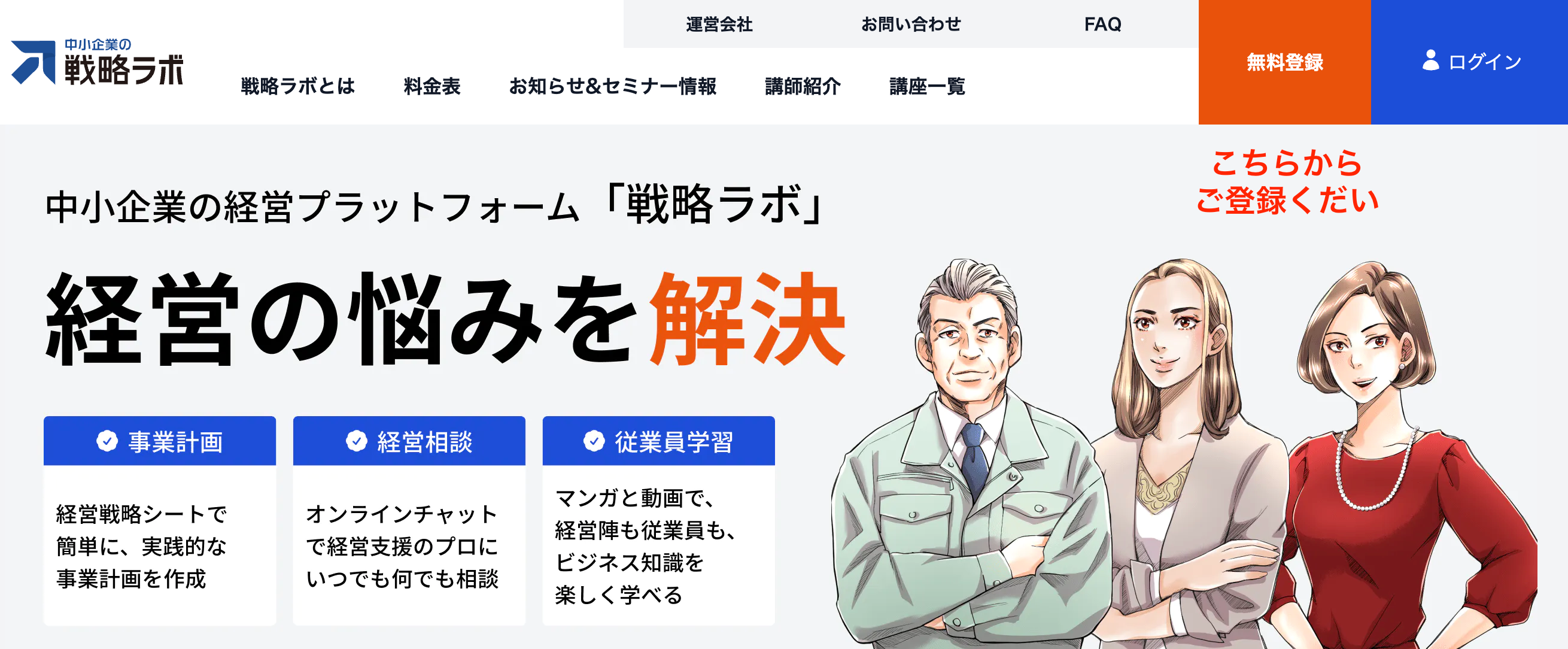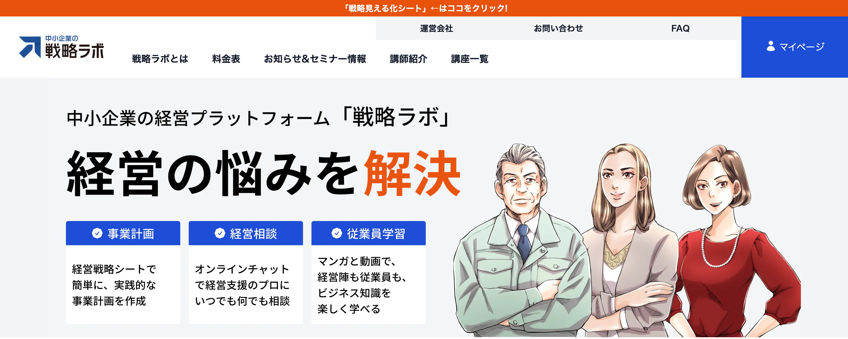 当社では今年に入り、漫画と専門家で学べる学習コンテンツ「中小企業の戦略ラボ」をリリースしました。従業員学習で大変好評でしたが、その中で、多くの中小企業経営者様から「事業計画の作成が難しい」「もっと簡単に作成できると良い」といったお悩みをいただきました。
