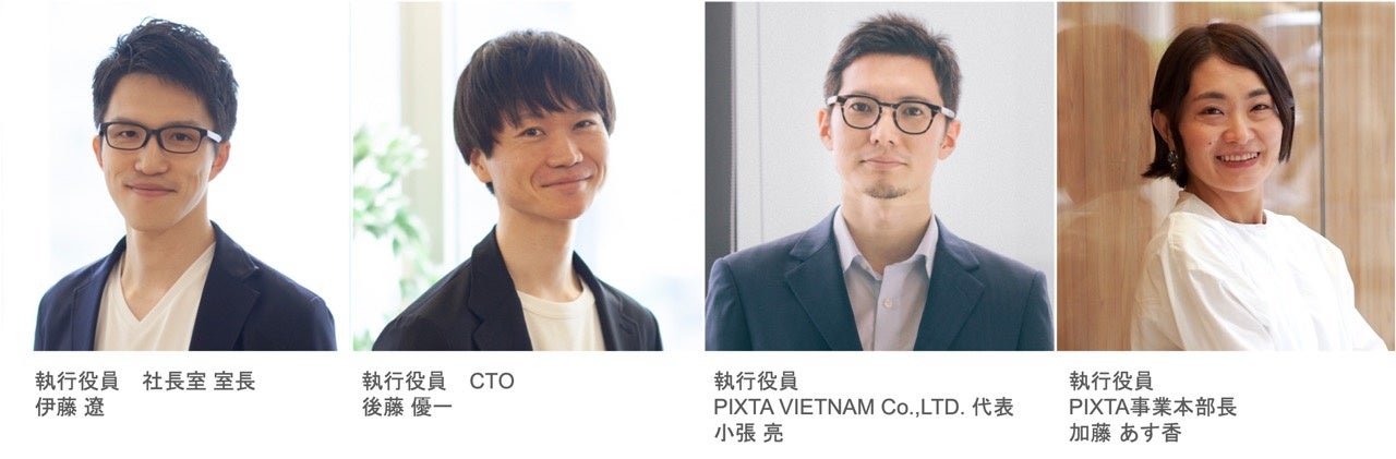 これまでPIXTA事業本部長を務めていた執行役員 伊藤 遼は、2022年1月に新設し兼務していた社長室 室長としての業務に専念し、引き続き、執行役員 社長室 室長として、ピクスタグループの企業価値向上をミッションに、中長期経営戦略の策定、M&Aや事業提携の取り組み、IRやファイナンス等に取り組んでまいります。