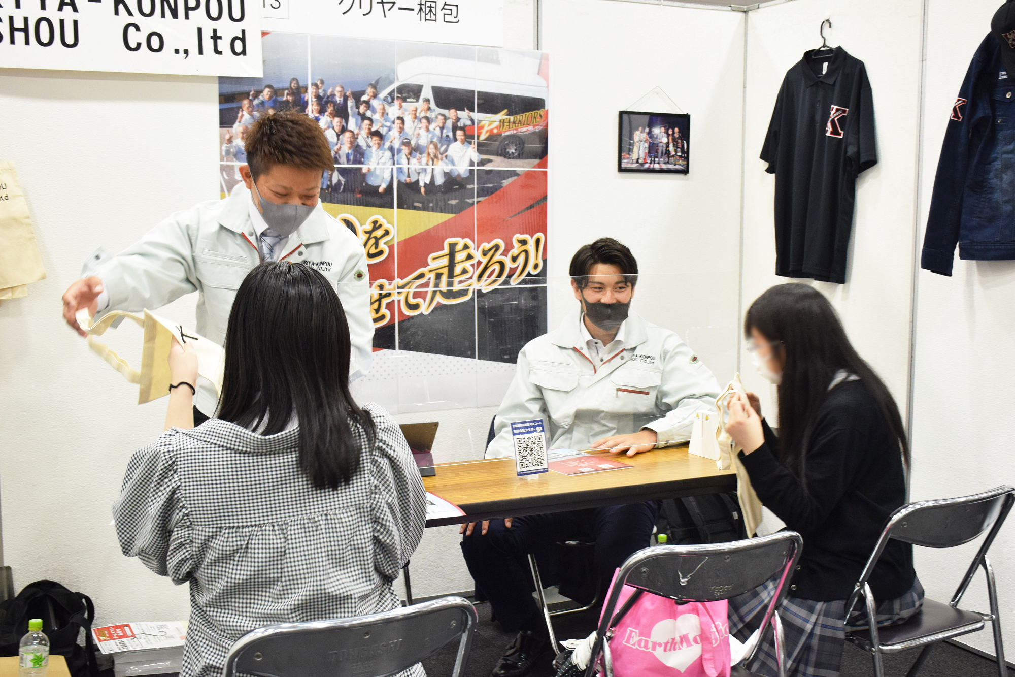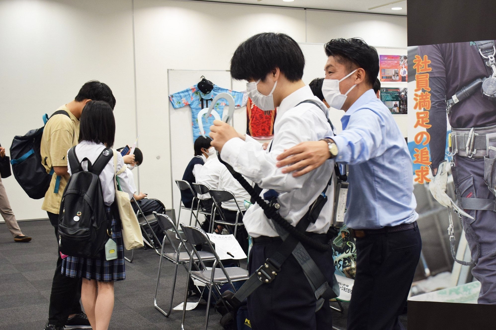 今年初開催した「おしごとフェア」は、高卒求人情報の解禁前である6月のタイミングで、社会にどのような仕事や会社があるのか「体験型」で知ることができるお仕事理解のイベントです。就活前の3年生だけでなく、進路をまだ決めていない1年~3年生も参加していただくことが可能です。企業と直接話を聞くことや仕事の体験を通して、7月から始まる就職活動に対する興味やモチベーションを向上させることや、自分の関心のある業界や職種の発見を促すことで、早期にキャリアについて知るきっかけを創ります。