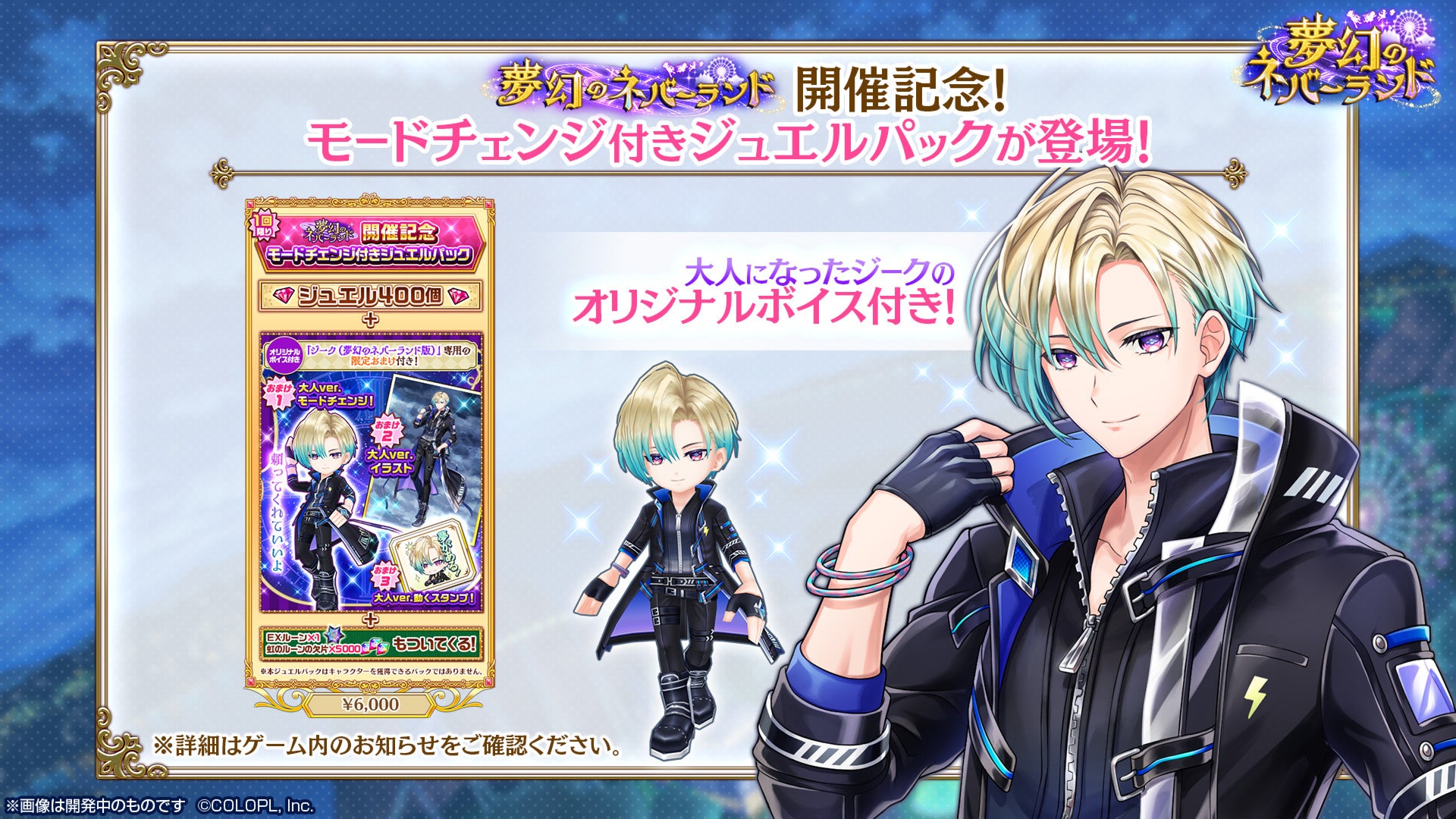 イベント開催に合わせて、ガチャなどを引くために必要なジュエルを購入できる特別な「ジュエルパック」が発売中です。今回は特別に「大人になったジーク」のモードチェンジ付きジュエルパックをご用意しております。詳細についてはゲーム内のお知らせをご確認ください。