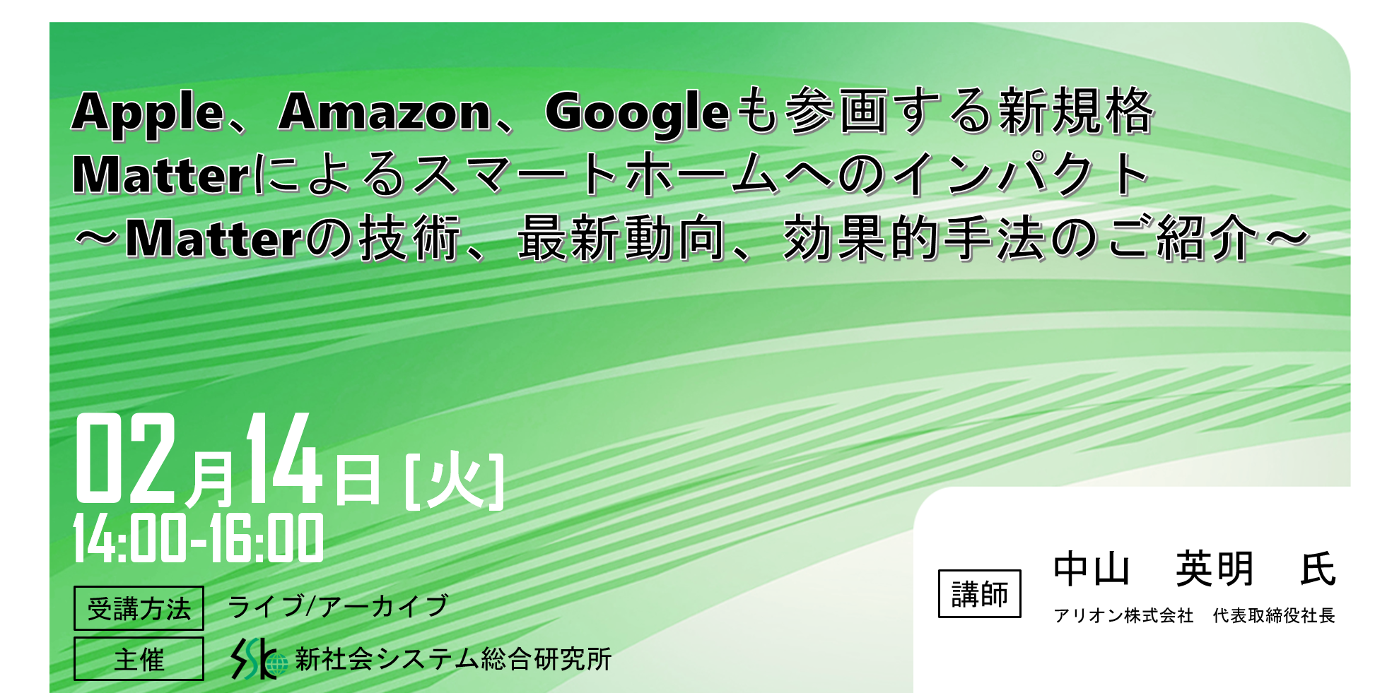 そこで当セミナーでは、Matter認証機関であるアリオンが、長年の検証経験を基に、Matter規格の概要や、日本市場が直面する課題およびトレンド、Matter製品を開発時の注意点などについて解説いたします。