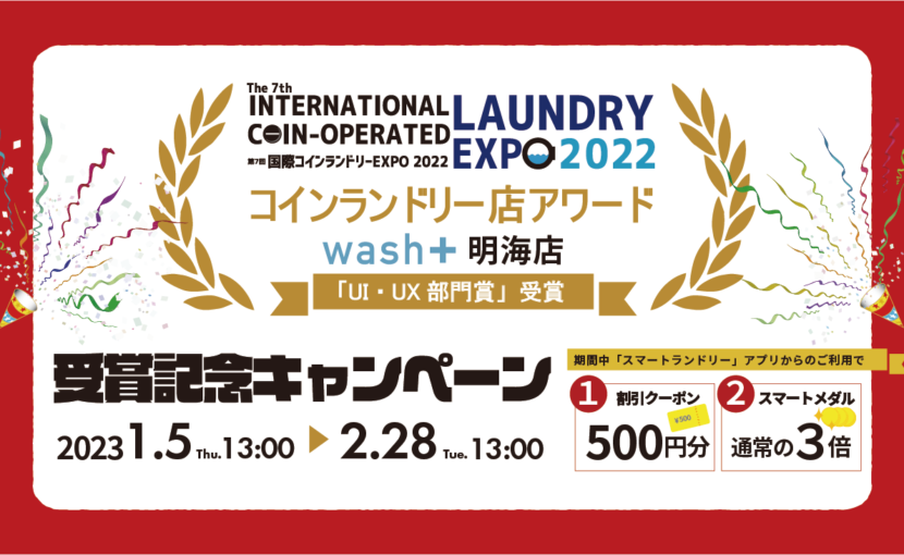 第7回コインランドリー店アワード2022において、明海店が「UI・UX賞」を授賞しました。
