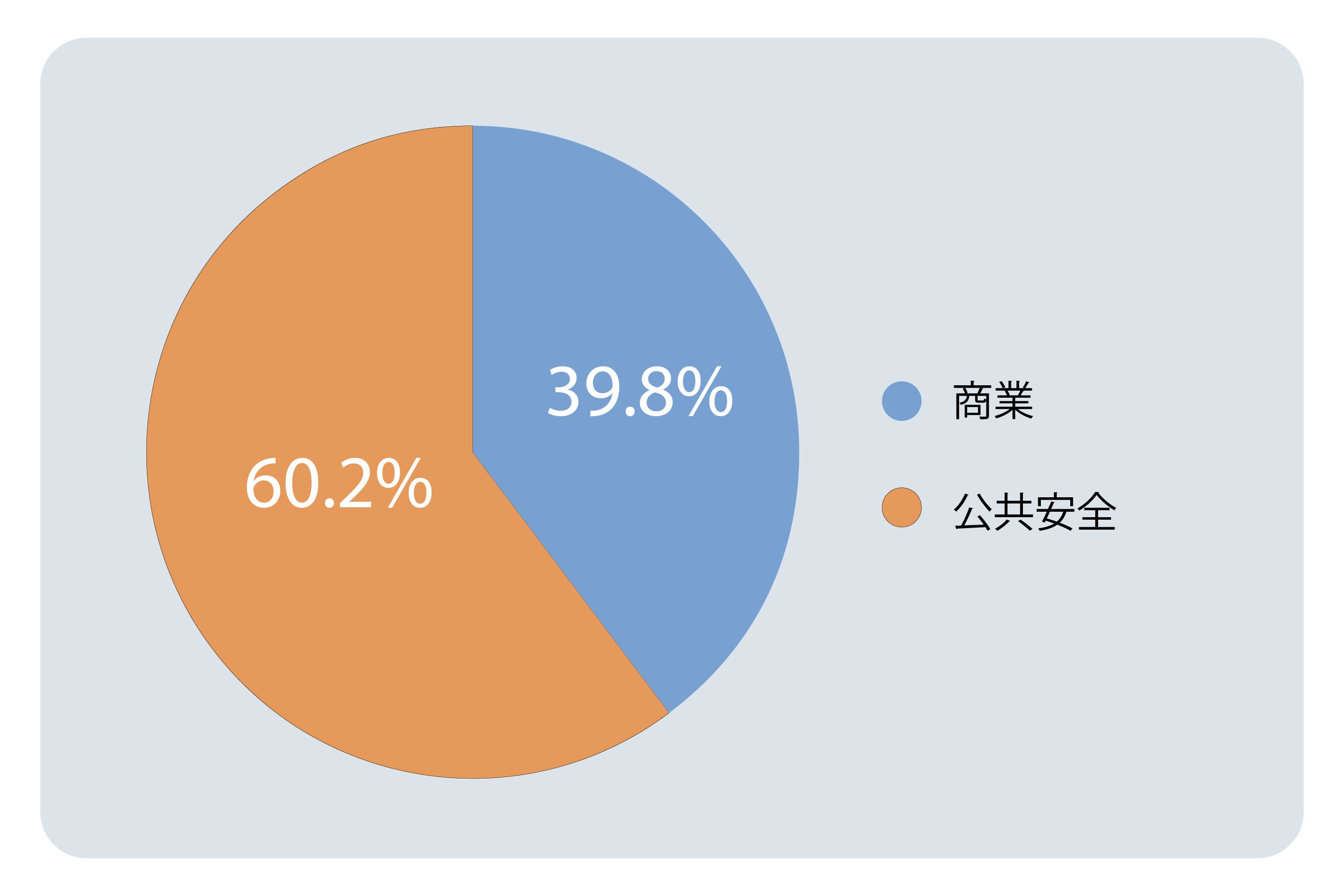 陸上移動無線機は、世界市場において最も普及しているアプリケーションは公共安全関連であり、それだけで、市場シェアの大半を占めています。