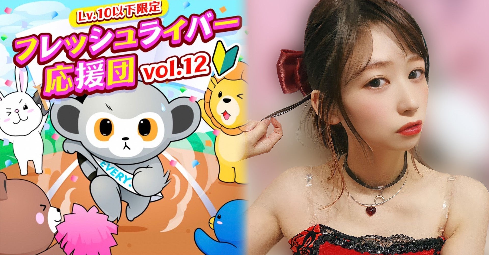 「フレッシュライバー応援団 vol.12」とは、2022年12月16日から12月30日にかけて開催されたアプリ内イベント。「フレッシュライバー応援団 vol.12」はイベント開始時にレベル10までのライバーを対象としたもので、イベント期間中にイベント指定ギフトの「ポイント」数でランキングが決まります。RainbowLIVE所属の『まなみん』が当イベントに参戦し、2位を獲得しました。