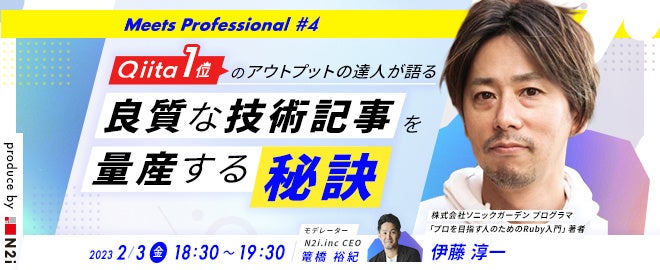 そこで今回の講演ではQiitaでユーザーランキング1位(2023年1月現在)の伊藤淳一さんを講師に招き、良質な技術記事を量産する秘訣について語っていただきます。