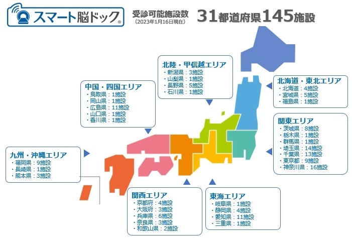 また、現在31都道府県145施設(1月16日現在)でスマート脳ドックを受診することが可能です。