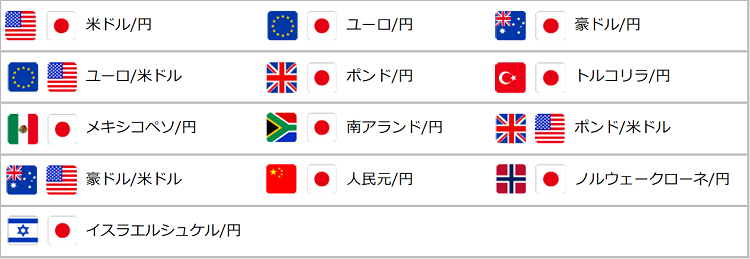 パートナーズFXで取扱いがある以下の通貨ペアのうちいずれかで、新規・決済どちらか1回以上のお取引