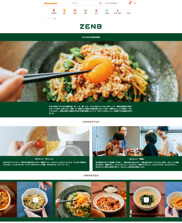 「Kuradashi Partner Page」は、パートナー企業さまのブランドの想いや、商品のストーリーをお伝えすることが可能となる独自のページを提供する機能です。本機能をご利用いただくことで、ブランドの理念をお伝えできることはもちろん、企業ごとの独自のブランドページ内に、出品いただいているすべての商品を集約し紹介することができます。これにより、クラダシにて独自で制作したコンテンツ(オリジナル記事)等も楽しんでいただきながら、Kuradashiユーザーに出品いただいているすべての商品の購入を促すことが可能となります。