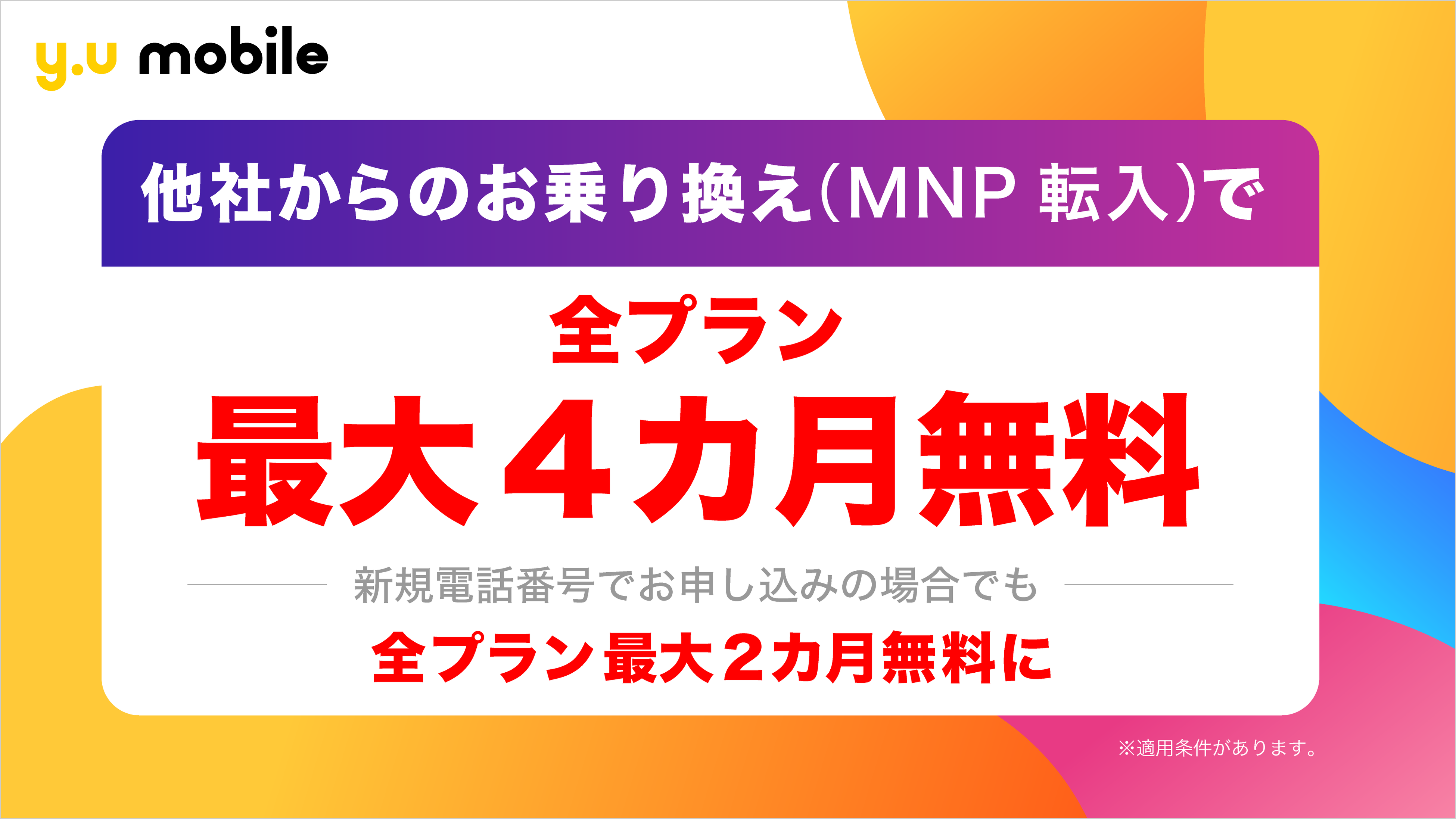 ・特典①③:キャンペーン期間中にy.u mobileを公式サイトからお申し込みいただいた方