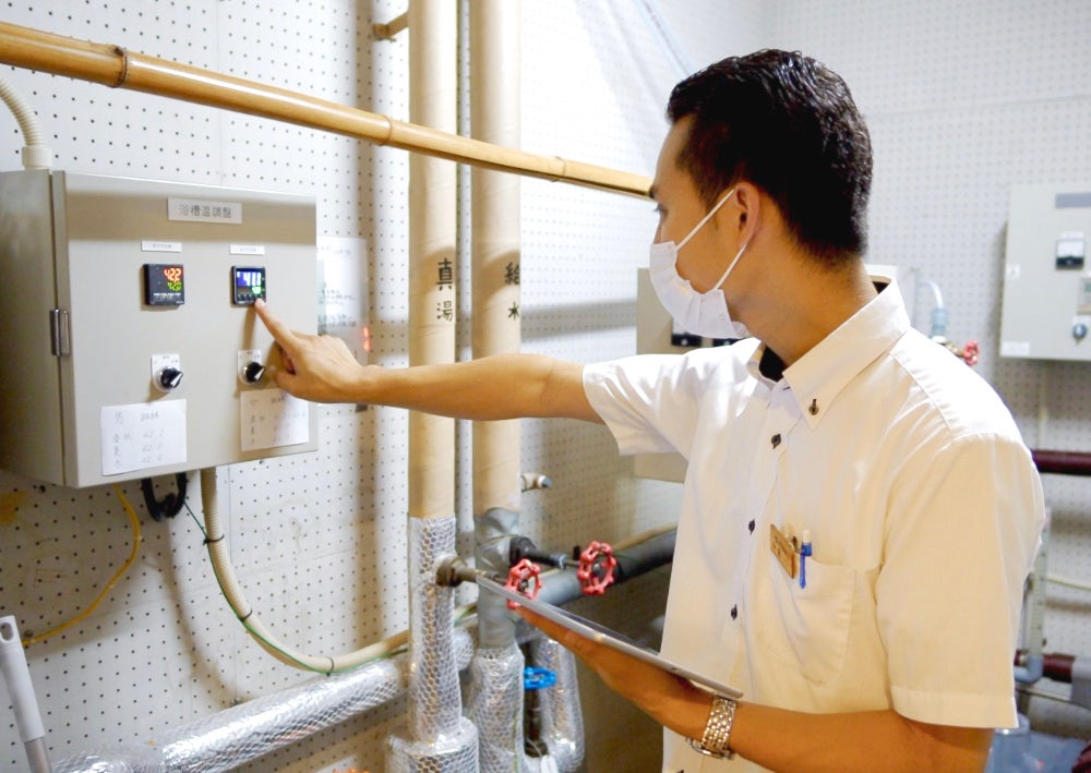 古屋旅館が擁する100%源泉掛け流し温泉は、2〜3時間ごとの温度記録や湯量の調節により、天然の熱だけで常に浴槽内を41〜42℃に維持する必要がありました。これまでは、その温度記録を紙帳票を用いて行っていたため、温度変化の傾向を把握するまでに手間を要していました。そのため、温泉の温度感知器や湯量を調節する調整弁といった設備機器の劣化やトラブルにも気付きづらく、故障等により温泉が使用できなくなるリスクを感じていました。
