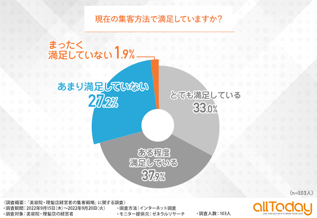 3割近くの美容院・理髪店経営者が、今の集客方法に対して満足できていないようです。