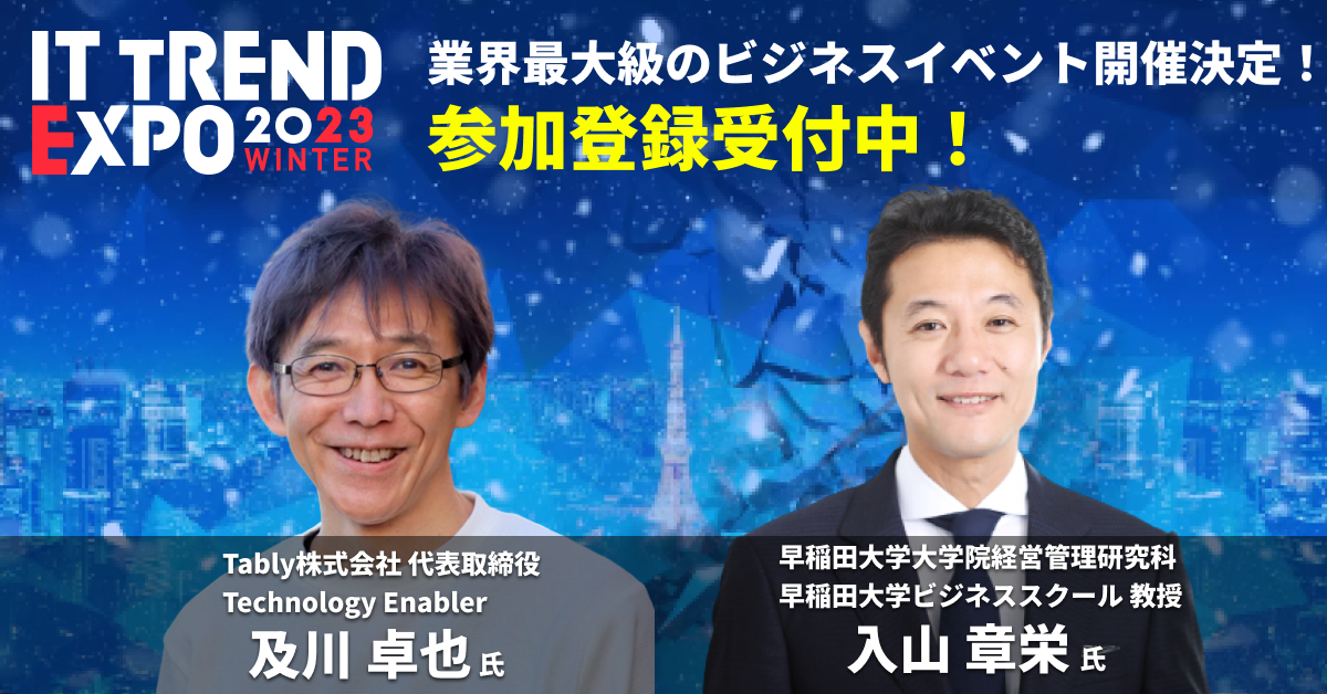 (本社:東京都渋谷区、代表取締役社長:齊藤和馬、以下「Innovation & Co.」)は、第7回目の開催となる業界最大級のオンライン展示会「ITトレンドEXPO2023 Winter」を、2023年2月7日(火)〜 2月10日(金)に開催。