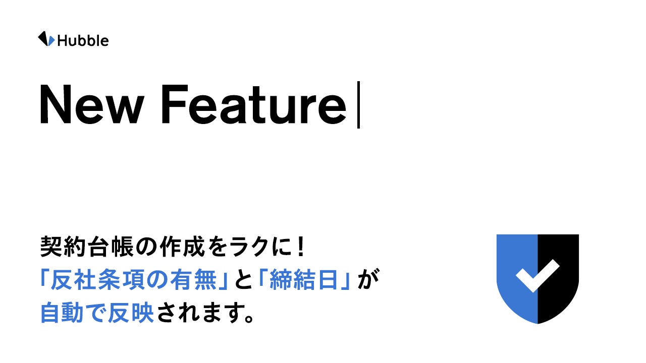契約書管理クラウドサービス「Hubble」、契約管理がよりラクに。 契約情報の自動反映機能に「反社条項の有無」と「締結日」を追加