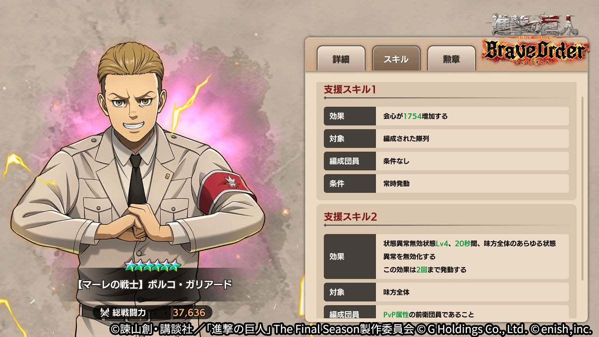 著作権表記:©諫山創・講談社/「進撃の巨人」The Final Season製作委員会 ©G Holdings Co., Ltd. ©enish,inc.