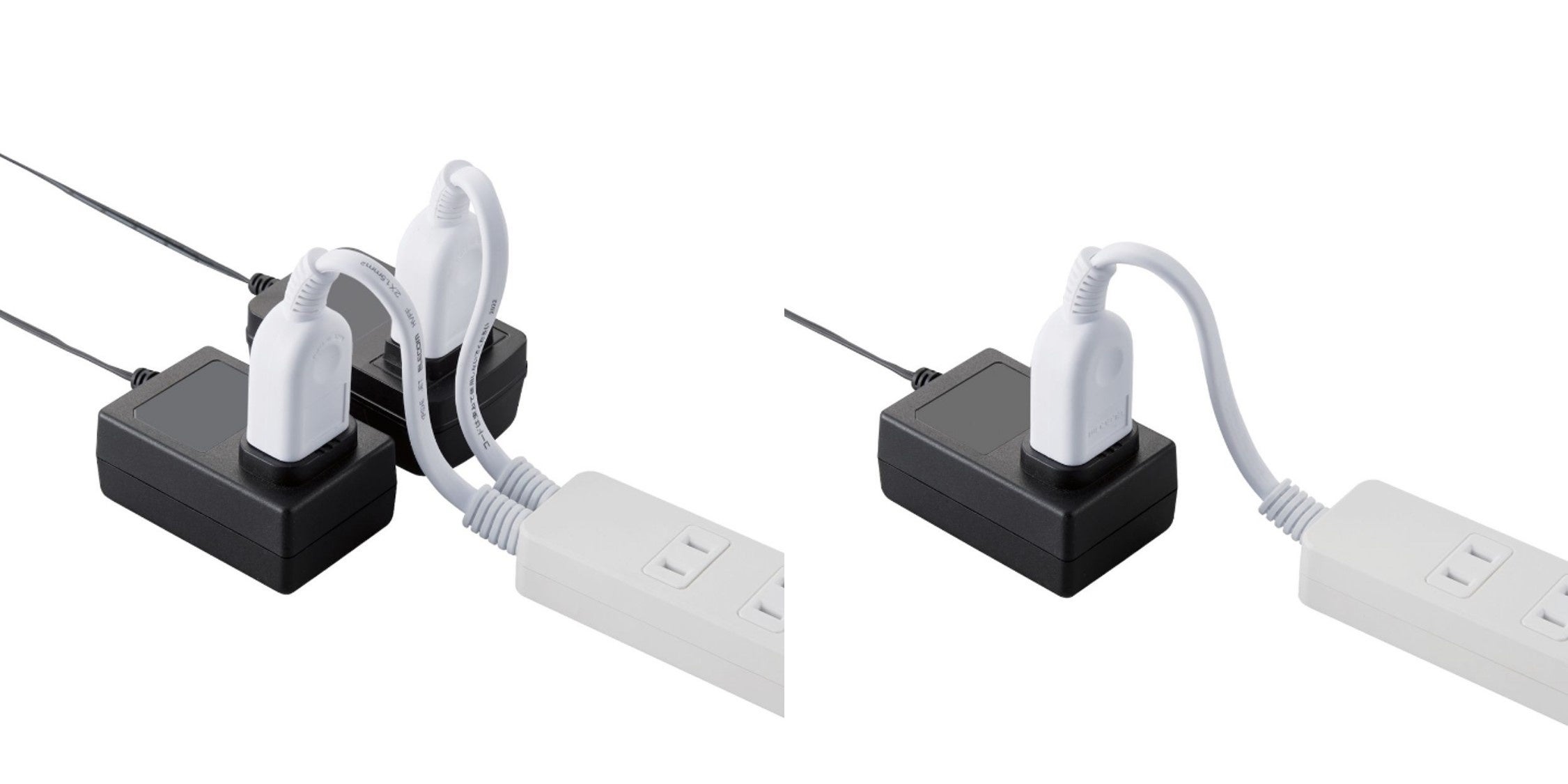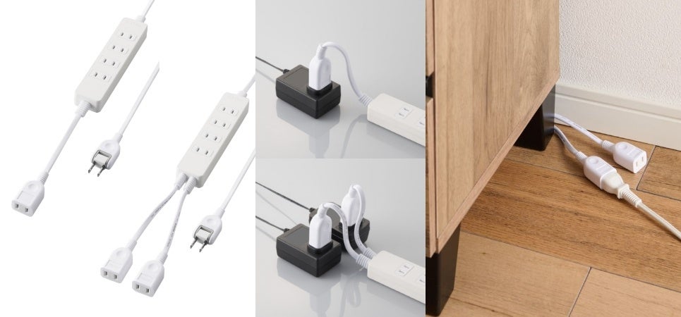 大きなアダプターを連続して接続しようとすると干渉してしまう場合がありますが、独立差込口付きタップなら、隔離接続できるので本体側の差込口を有効利用できます。本体部に4個口、独立部に1個口または2個口の差込口を搭載したタップです。