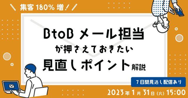 | タイトル | 【集客180%増】 BtoBメール担当が押さえておきたい「見直しポイント」解説 |