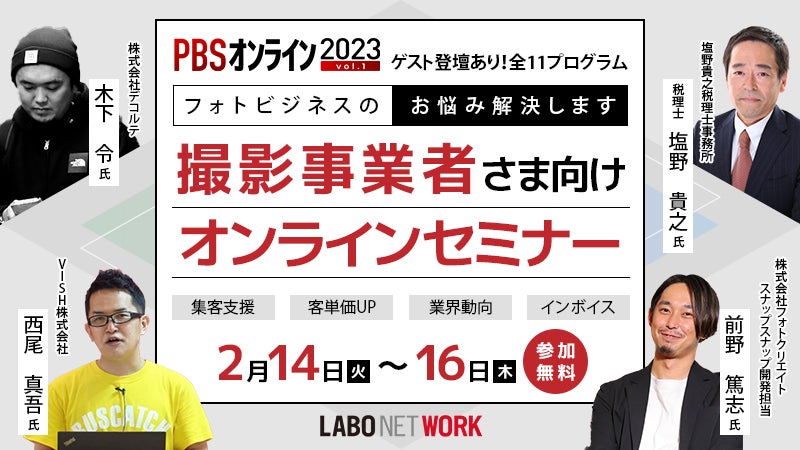 フォトビジネスに携わる事業者を対象にしたWEBセミナーイベント「PBSオンライン2023 Vol.1」を