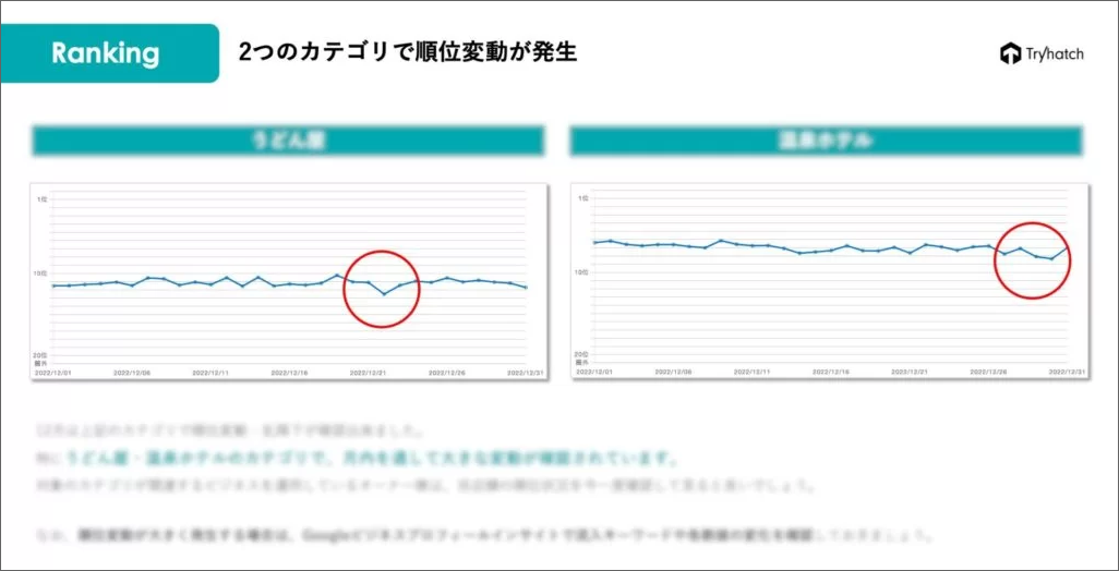 12月は特定の検索キーワードで大きな変動が発生しています。対象のカテゴリに関連するビジネスのオーナー様は自店舗の順位状況と比較してみて下さい。