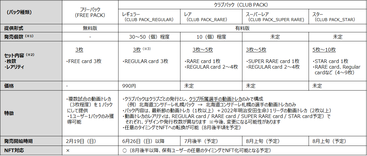 (※3) 第18節終了後に発売するのはクラブパック レギュラー(CLUB PACK_REGULAR)のみで、5枚入りを予定しています