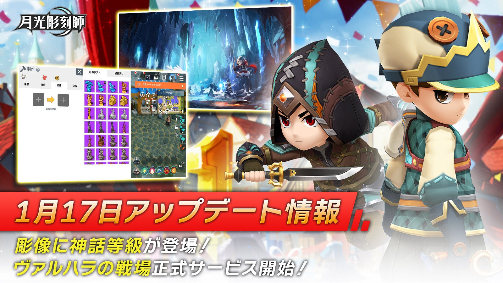 「ヴァルハラの戦場」正式サービス開始に伴い、新たなボスモンスターの追加や、ギルドランキング機能が追加され、充実したコンテンツとなっております。新たに登場する強敵を倒して「神話」等級の彫像製作を目指しましょう!