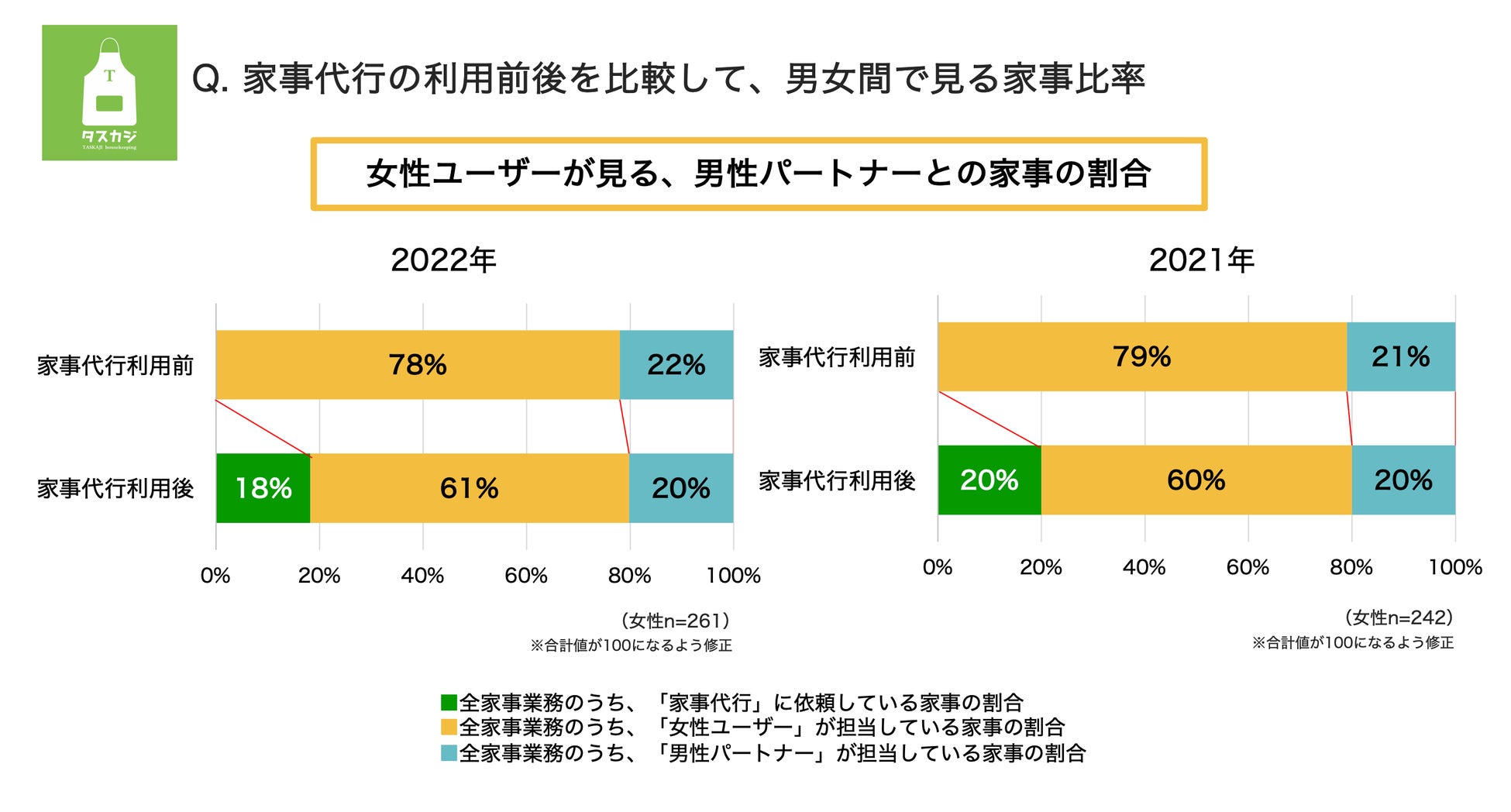 (参考)2021年実施アンケート:2021年『タスカジ、『家庭内(ジェンダー間)の家事ギャップと家事代行利用の実態調査』を実施』
