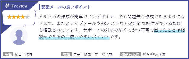 「ITreview」に掲載されている配配メールのユーザーレビューを一部ご紹介いたします。