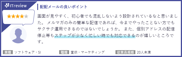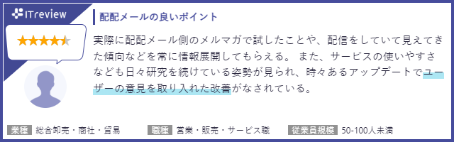 「ITreview」に掲載されている配配メールのユーザーレビューを一部ご紹介いたします。