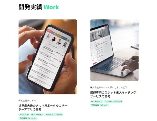 サービスのメリットや解決できる課題、具体的なサービスフロー、関連する実績を掲載し、お客様毎のデジタルプロダクト開発における様々な不安や疑問に応えられるコンテンツとなっています。