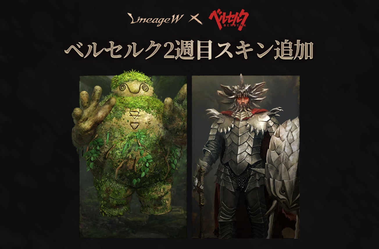 「リネージュW」は只今、映画『ベルセルク 黄金時代篇』およびTVアニメ『ベルセルク』とのコラボ第2弾を開催中です。コラボレーションイベントや限定スキンカードの配布、SNSキャンペーンなど、見逃せない内容となっていますのでぜひこの機会に「リネージュW」をお楽しみください!