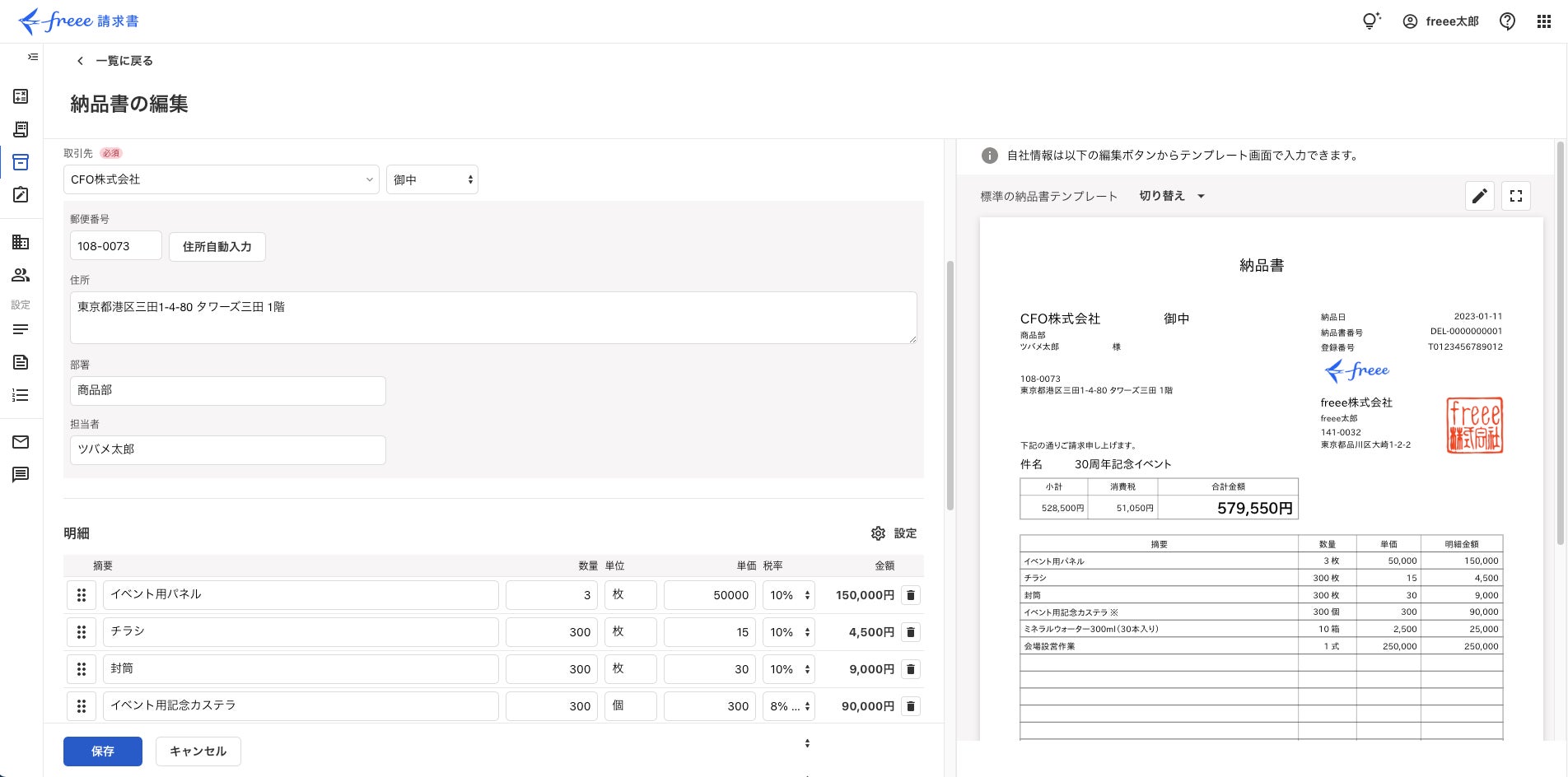 freee株式会社(本社:東京都品川区、CEO:佐々木大輔、以下「freee」)は、インボイス制度に対応した請求書を無料で発行できる「freee請求書」に、新たに納品書を無料で発行できる機能を追加しました。納品書とは、その名の通り納品した商品・サービスの内容と数量・金額などを取引先に伝え、双方が確認するための書類です。