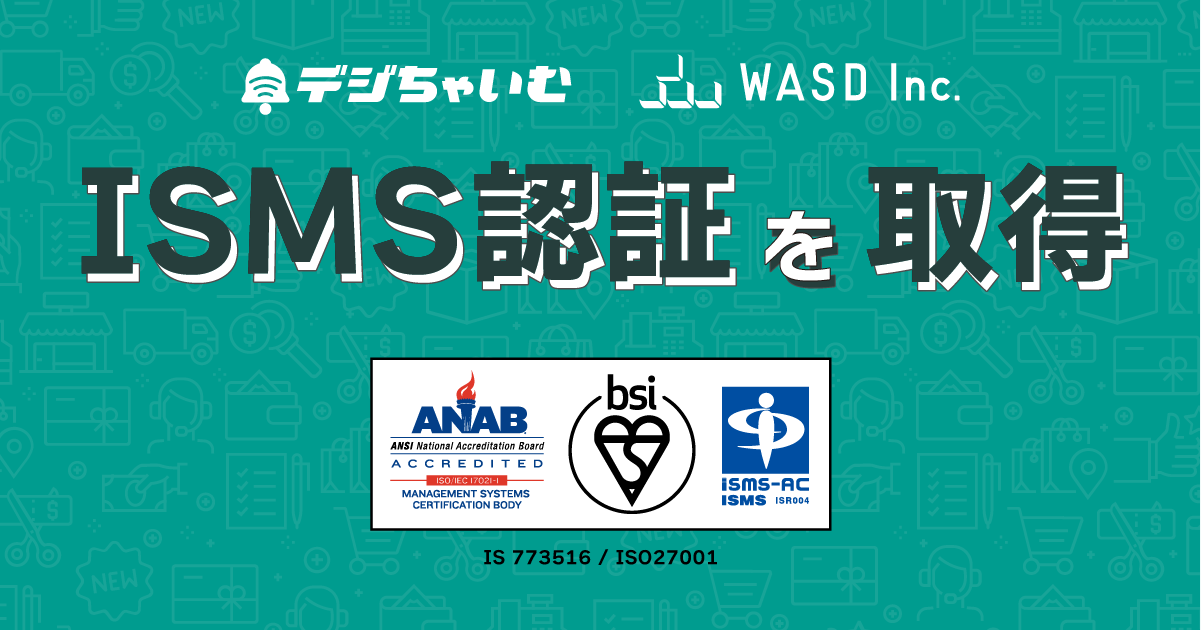 接客業向けクラウドサービス「デジちゃいむ」は、有り難いことに2020年のサービス開始時と比べ接客が発生するさまざまな業種業態で導入およびご検討をいただけるようになりました。 セキュリティ水準の高い企業様にも安心してご導入いただけるよう、また当社といたしましても大切なお客様の情報に対する取り扱い体制の構築は必須と考え、ISMS認証の取得に至りました。 今後も、情報セキュリティ基本方針を全従業員が認識し、情報セキュリティマネジメントの維持・向上に努め、お客様が安心してサービスをご利用できるよう取り組んでまいります。