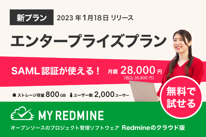 また、My Redmineの無料お試しでもエンタープライズプランをご用意。SAML認証機能をお試しいただけます。