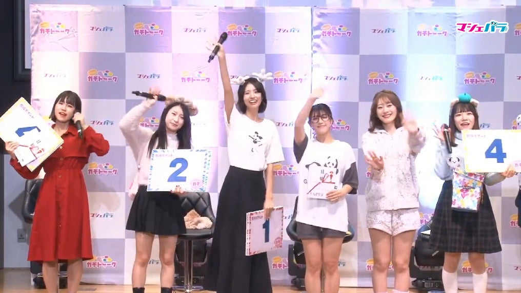 テーマパークでガチトーークに出演した夢乃なこ、水谷彩咲、上原りせ、春沢リリな。