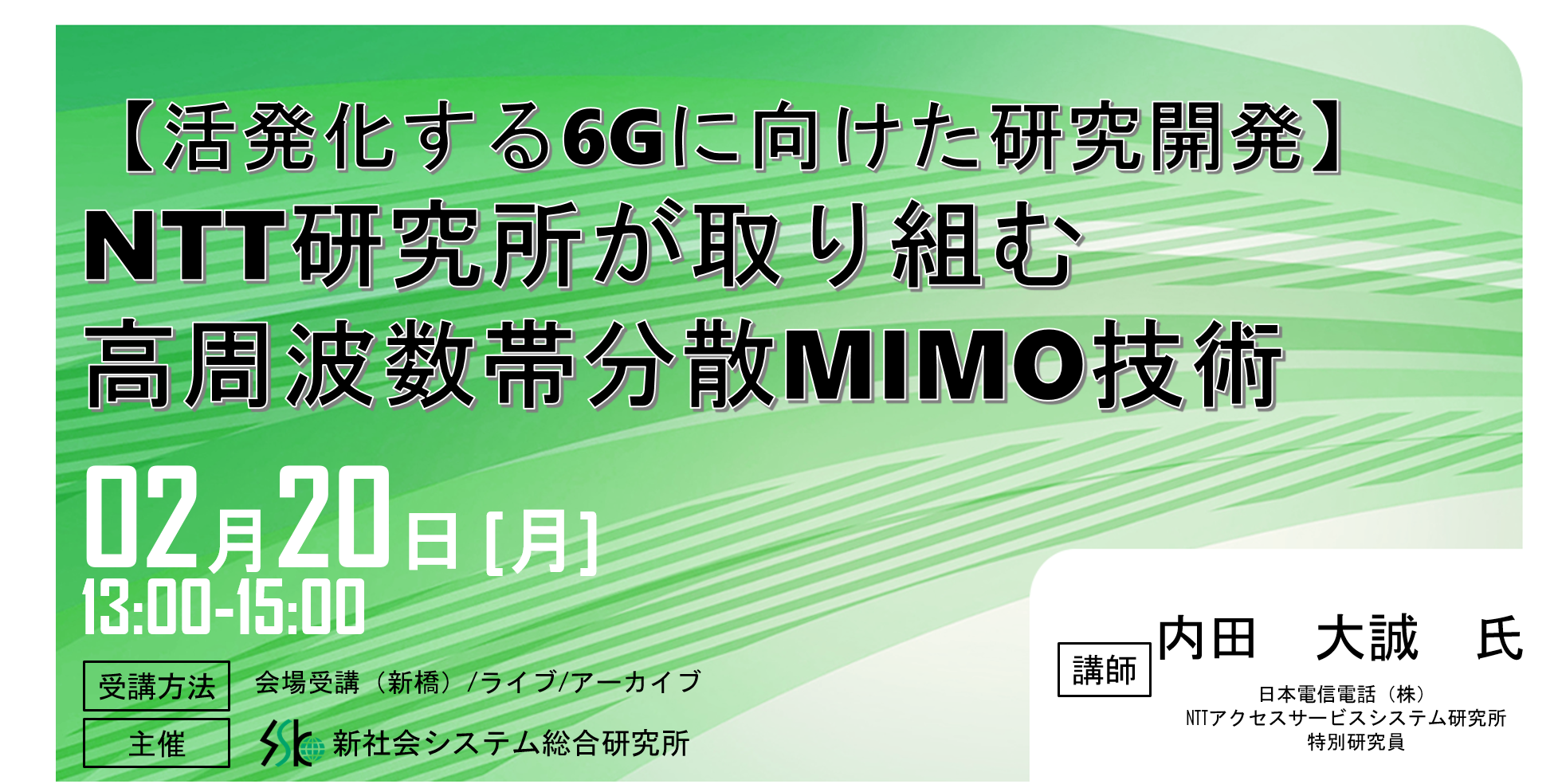 本講演ではこの高周波数帯分散MIMO技術に対するNTT研究所の取り組みを紹介します。