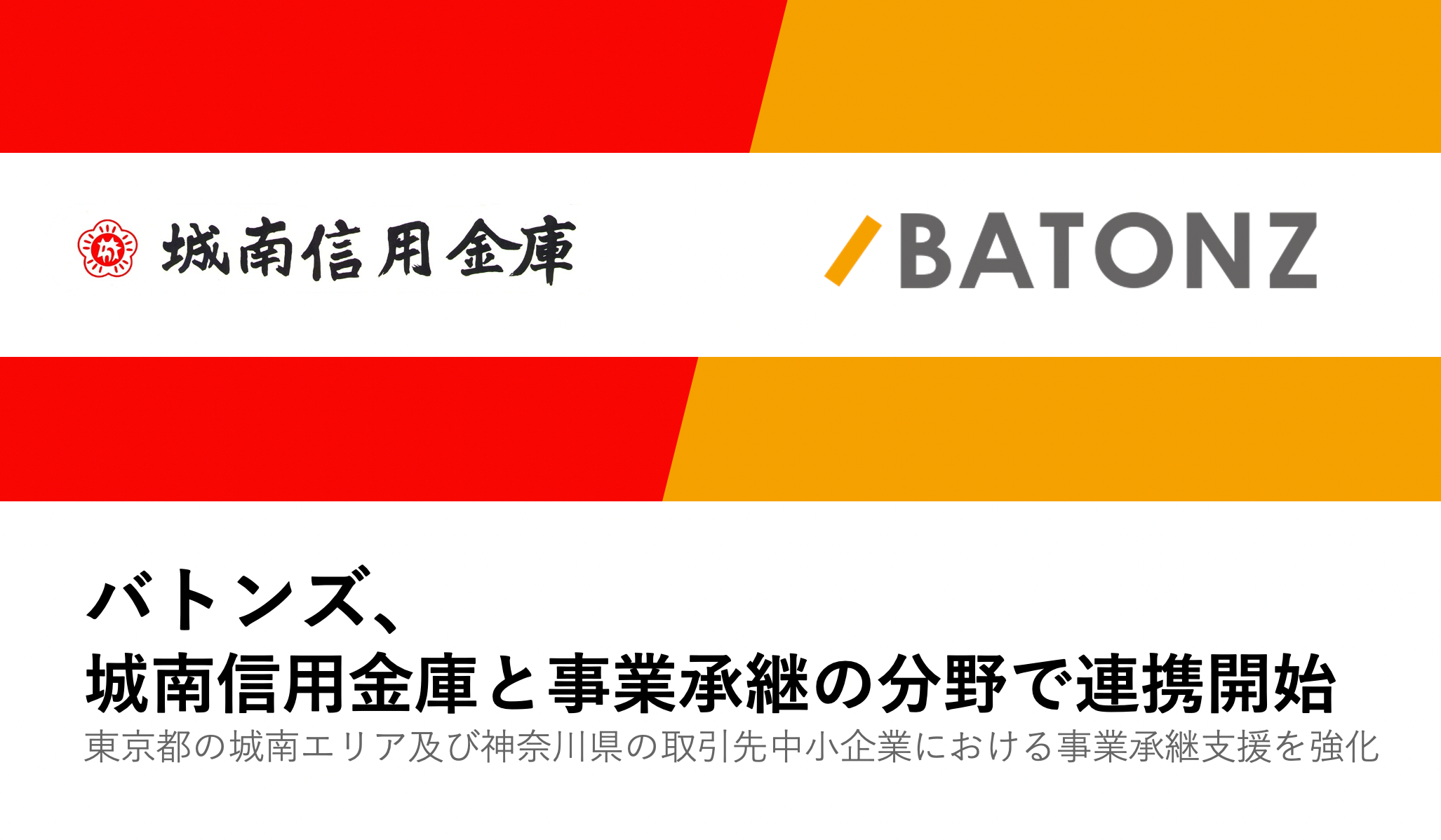 後継者のいない中小企業・小規模事業者の第三者承継・M&Aを推進するため、城南信用金庫とバトンズが連携し、事業承継支援ネットワークを強化します。これにより、東京都区部の城南エリア及び神奈川県を中心とした後継者不在企業の事業承継を推進して価値ある事業を次世代へとつなげることで、雇用を守り地域経済の活性化を図ることを目的としています。