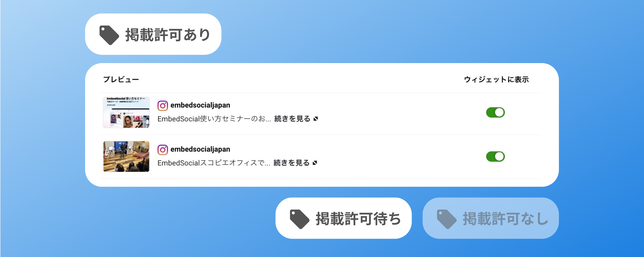 また作成したタグをもとにWEBサイトに表示させる投稿を自動でフィルタリングすることができるため、掲載許可ありのタグがついた投稿のみをWEBサイトへと表示させればさらに管理工数を減らすことができます。