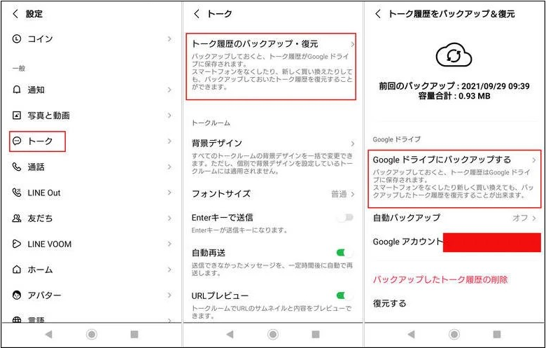 準備5、LINEのトーク履歴をGoogle ドライブにバックアップする